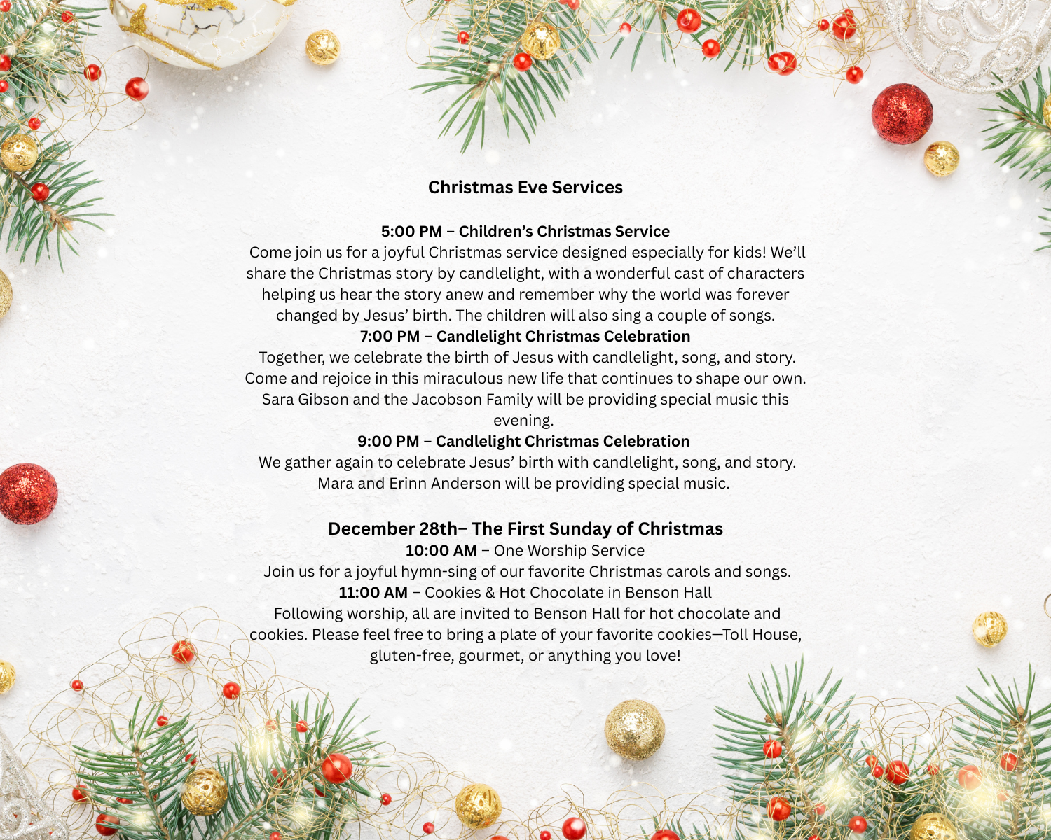 To contact any of the church staff, please send us an email through our Contact Page!